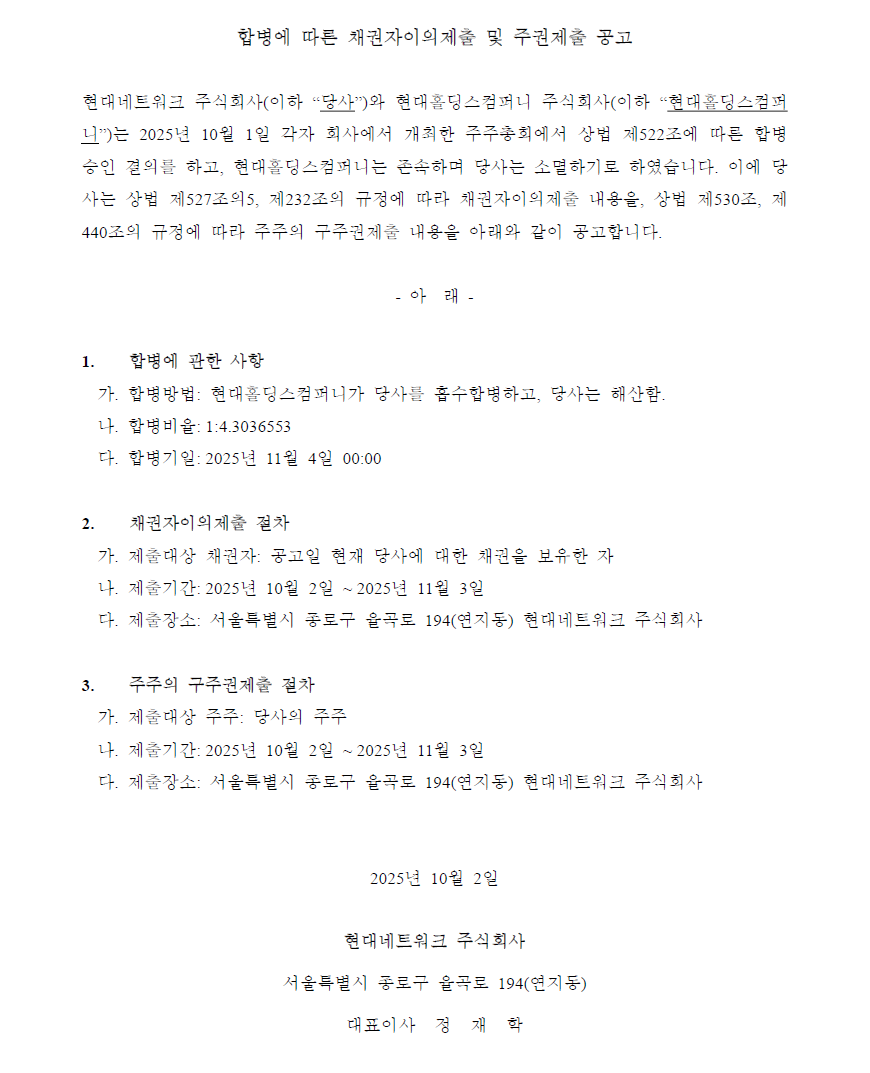 3 | 합병에 따른 채권자 이의제출 및 주권제출 공고 |