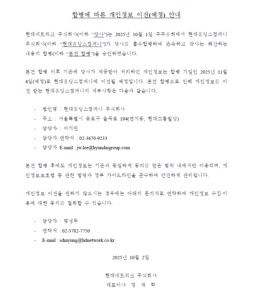 4 | 합병에 따른 개인정보이전 안내 |